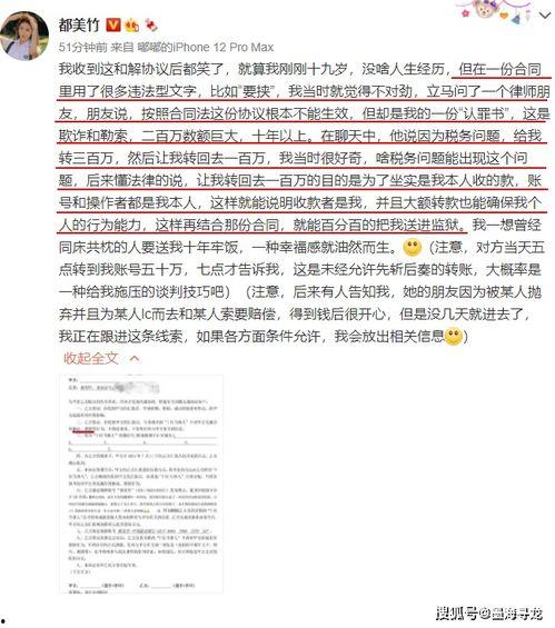 都美竹爆料合同视频事件,让我们看到了娱乐圈的“风暴眼”。在这个看似光鲜亮丽的行业背后,隐藏着许多不为人知的黑暗面。这场事件让我们反思,娱乐圈应该如何加强自律,杜绝不良风气?
